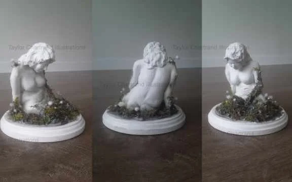 With so many materials to tell it! Charcoal, graphite, oil paint, acrylic paint, acrylic panes, ink, watercolor, encaustic painting, printmaking, sculpture in wood, metal, clay, paper… so many different tools to say what we need to, each with its own influence. For example, if I were to do a piece about a childhood memory, I would like to use encaustic. The wax medium would help me to show the hazy, foggy nature of an old memory that shifts. Something that looks just out of reach. If I want to create an artwork about feeling stuck making wishes and not actually doing anything and how that affect me, I may use clay to represent the heaviness of that feeling of being sad that nothing ever gets done. (Note the photo.) There are other decisions to make in creating the artwork. They greenery being the only real color because that is the only thing growing: wishes. The dandelions fragile like hopes. The decaying form of the body as it does nothing but wallow with want.
